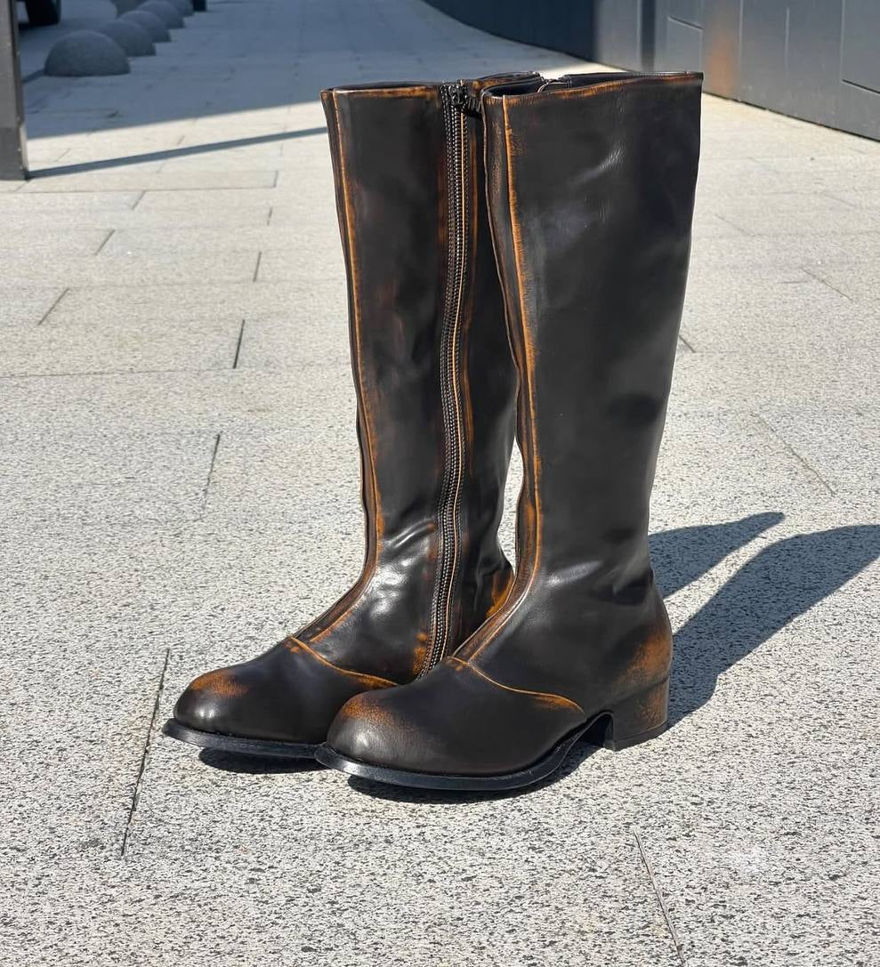 Apice Bice Viper Leather Knee-High Boots With Zipper