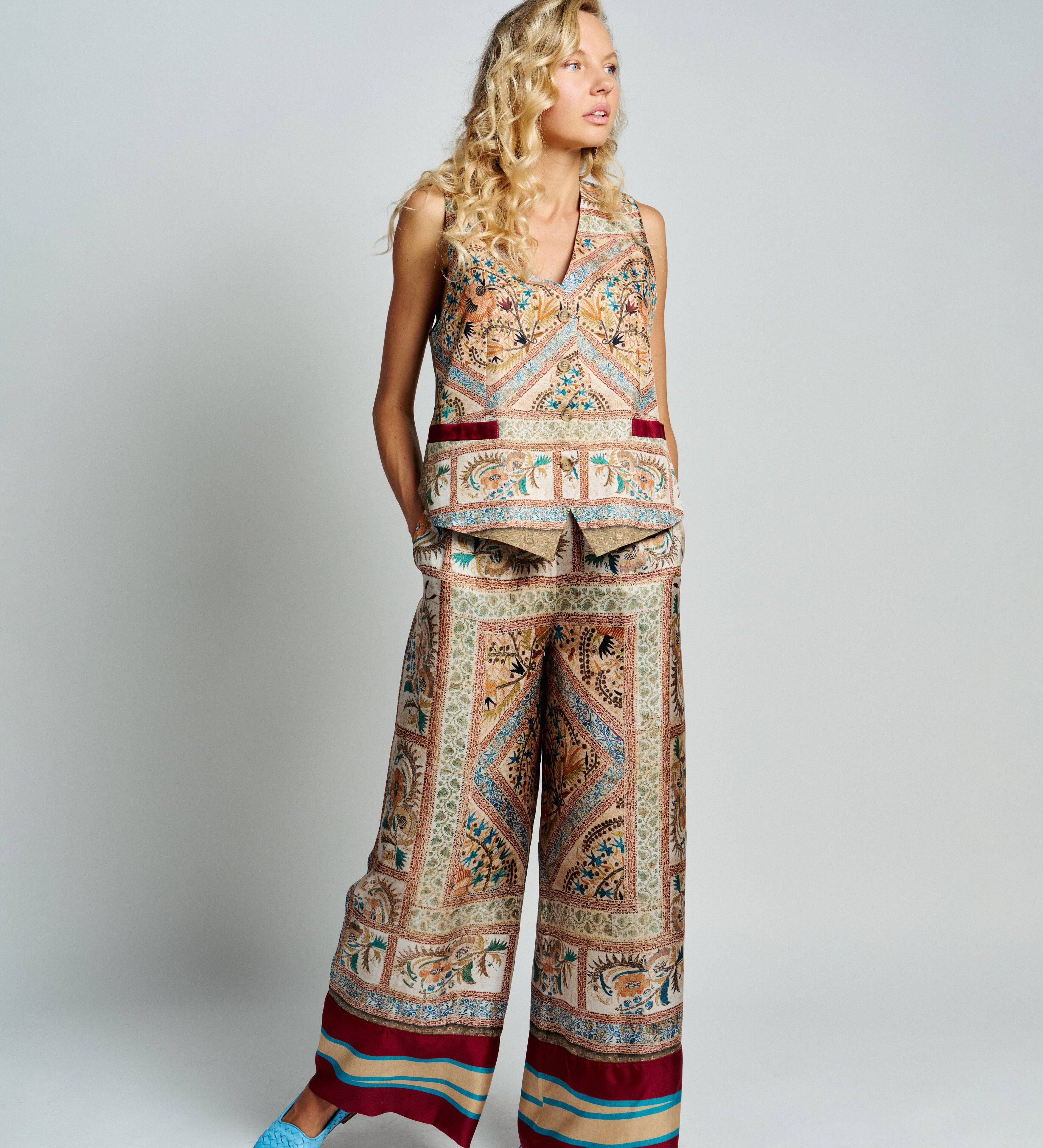 His collections fuse rich patterns with luxurious textiles for a bold, artistic statement.