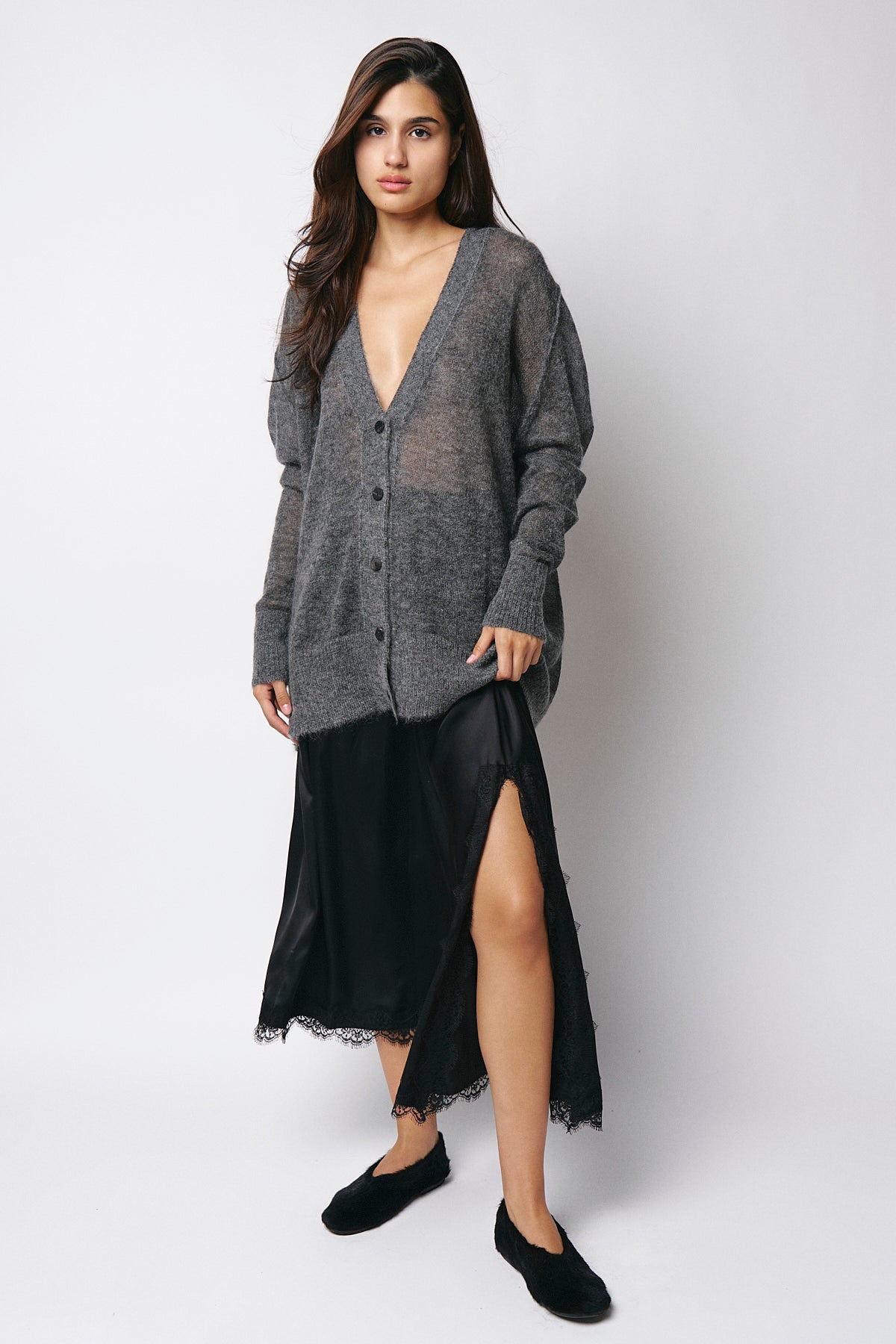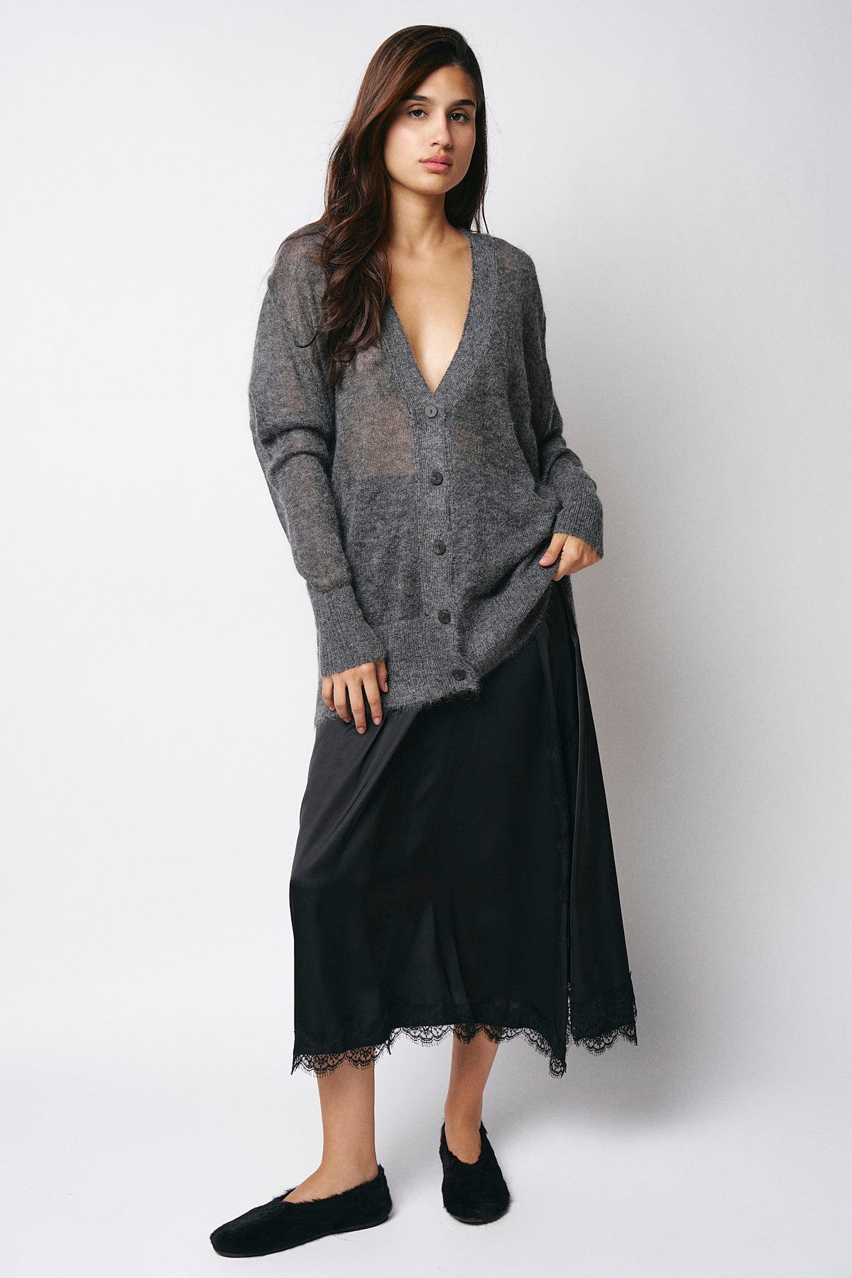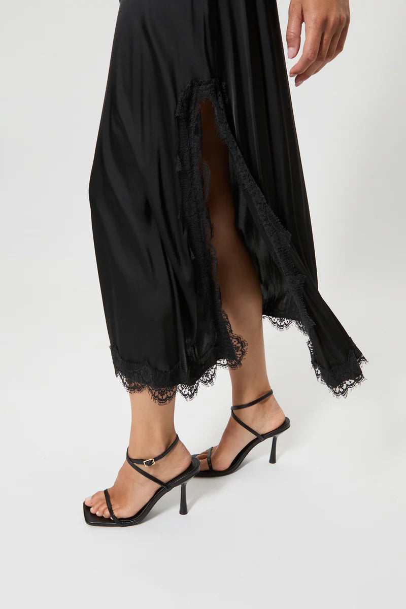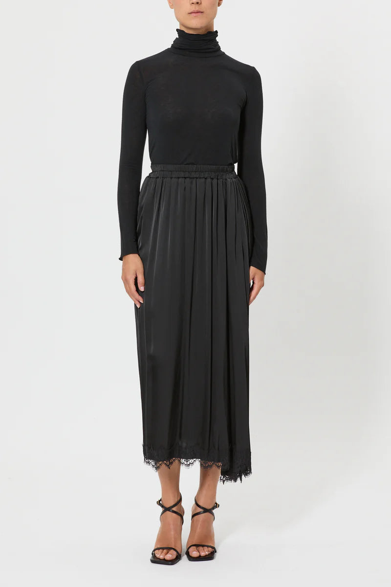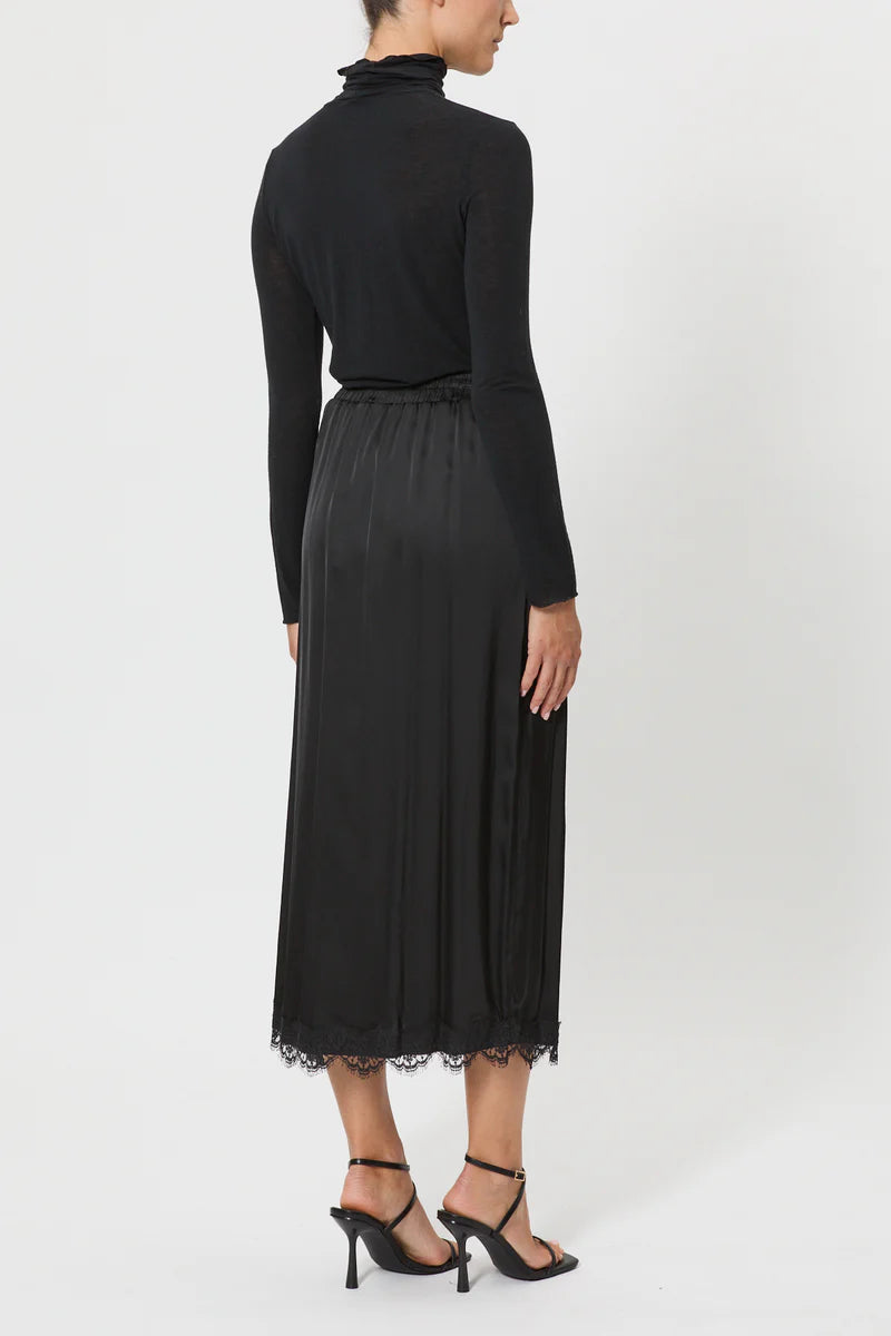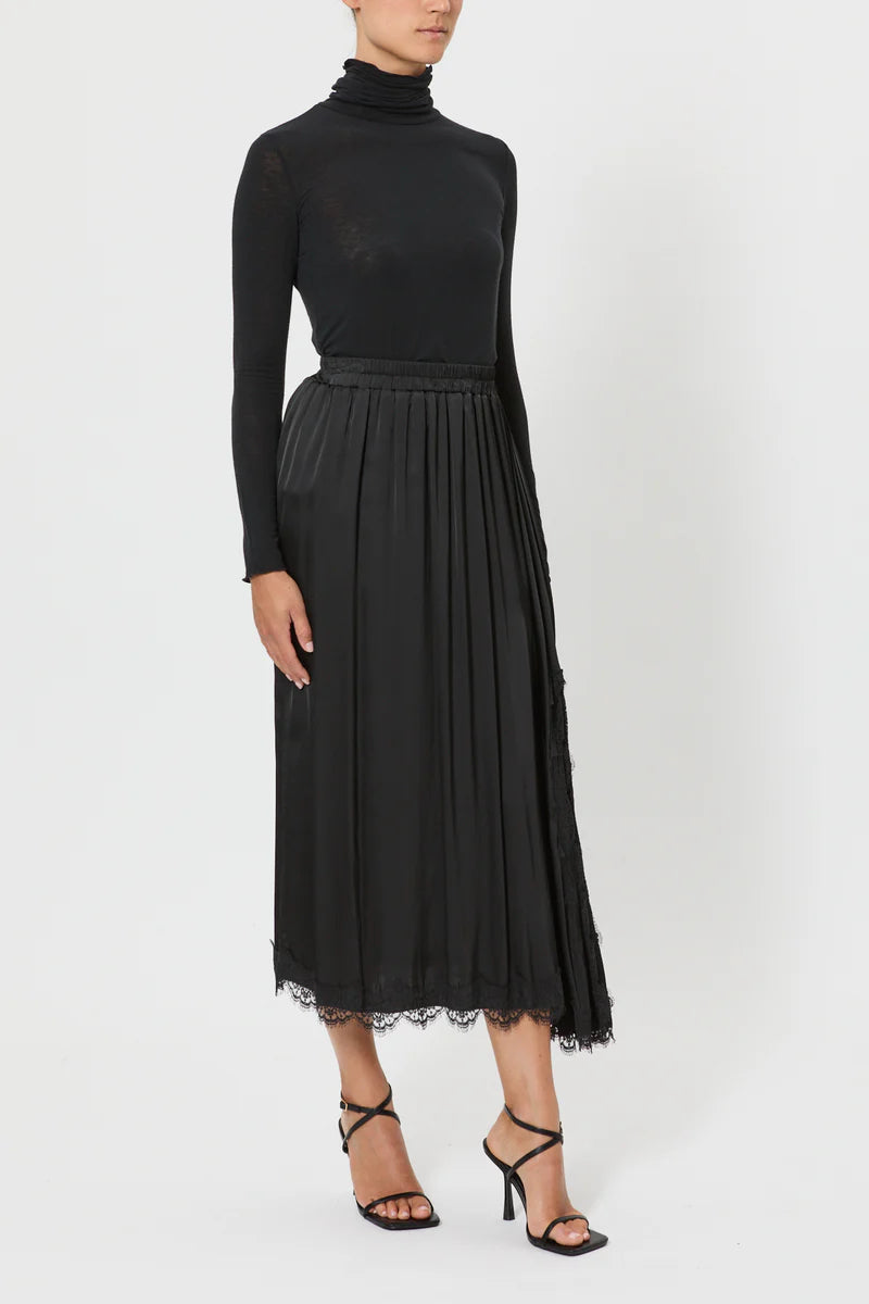Asymmetrical skirt with a slit and lace trim. 100% Made in Italy, crafted in Florence by expert artisans.