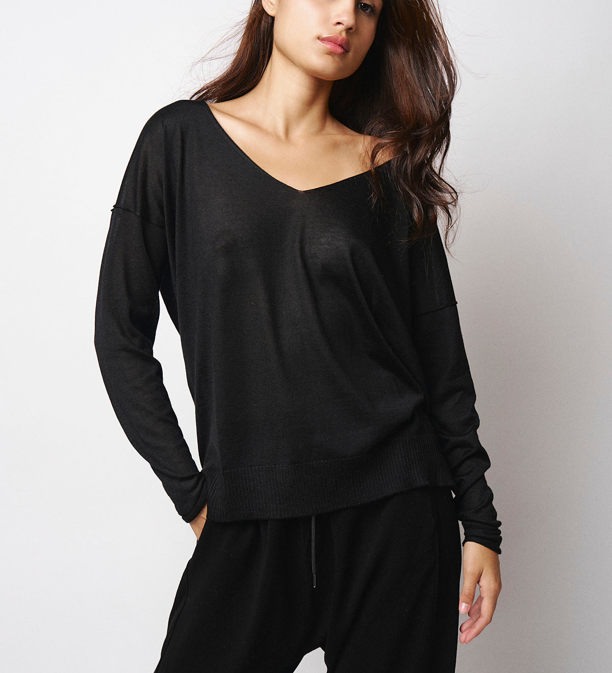 Isabel Benenato Black V-Neck Knit Sweater DK03F25