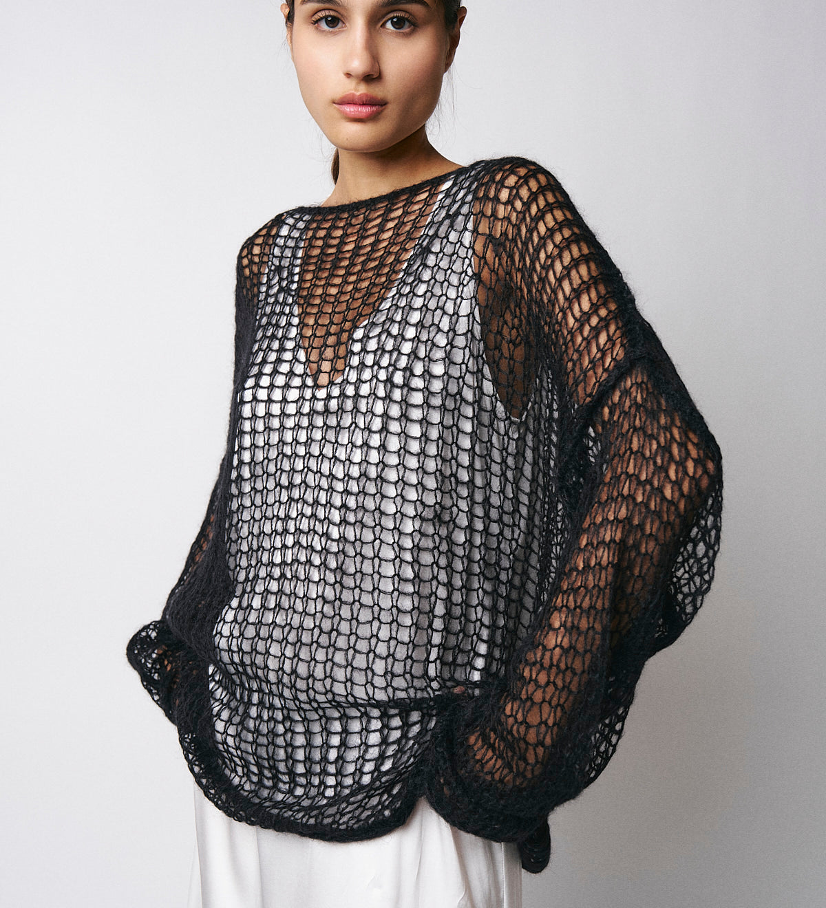 Isabel Benenato Black Open-Knit Sweater DK901F25