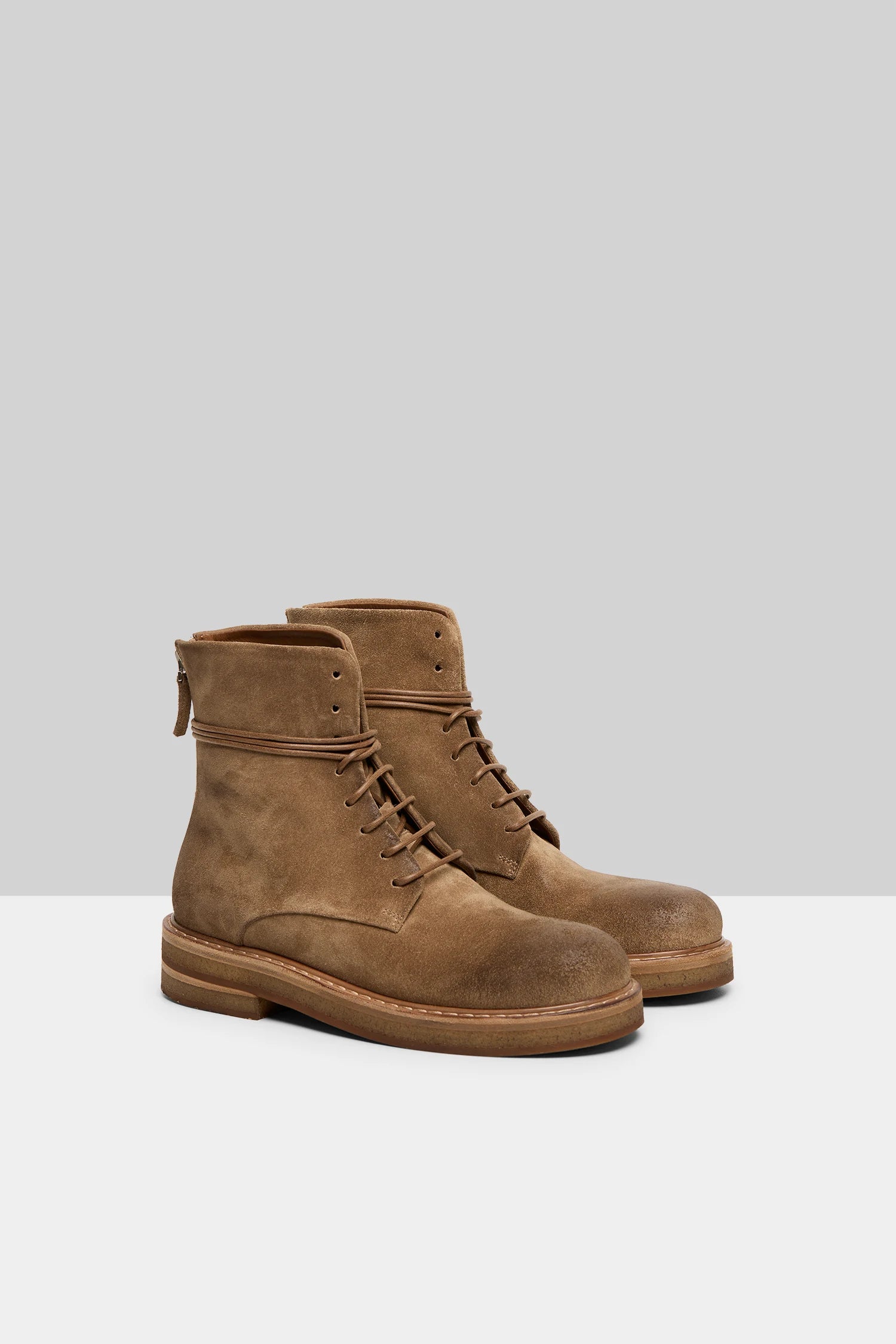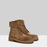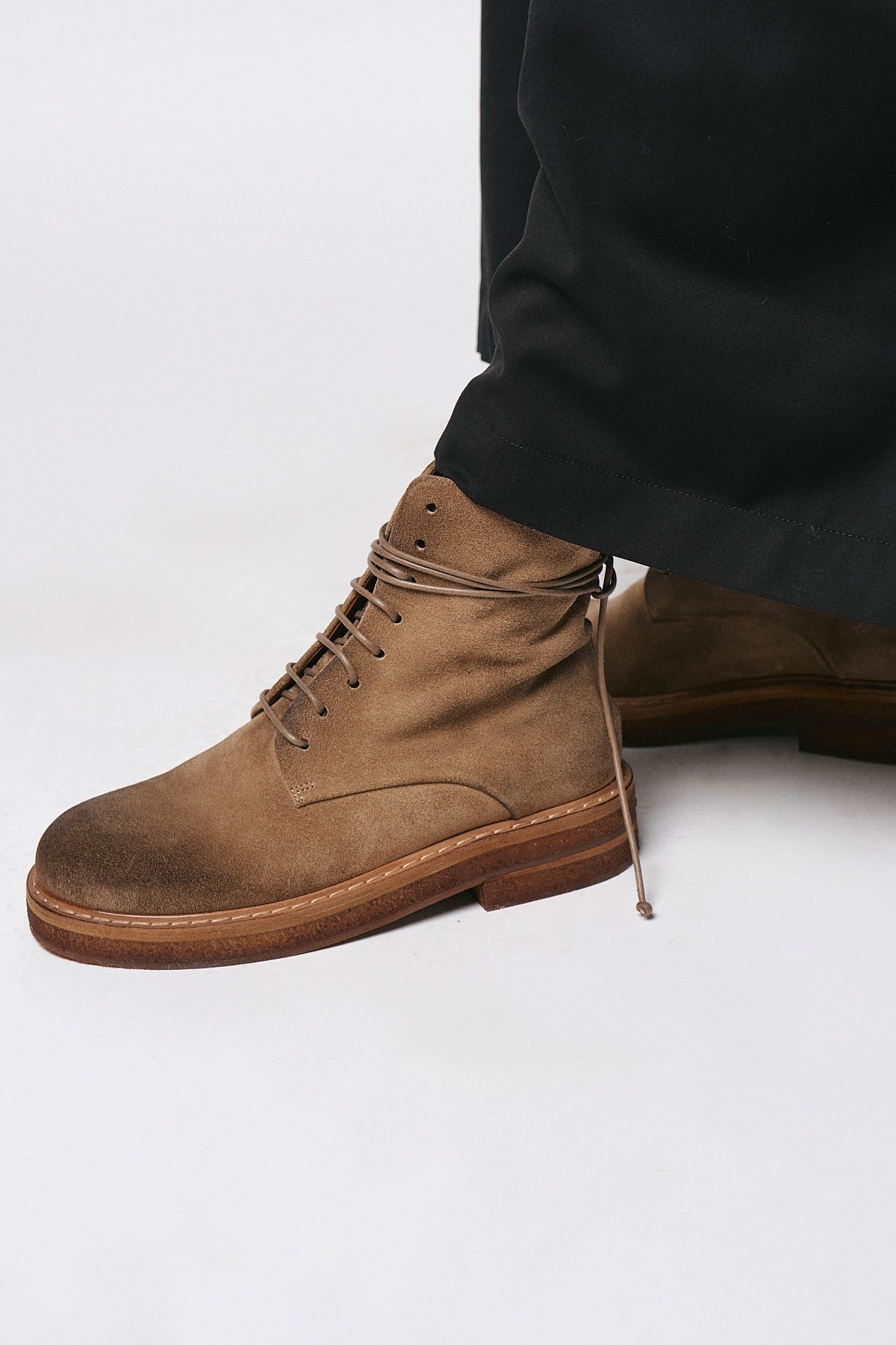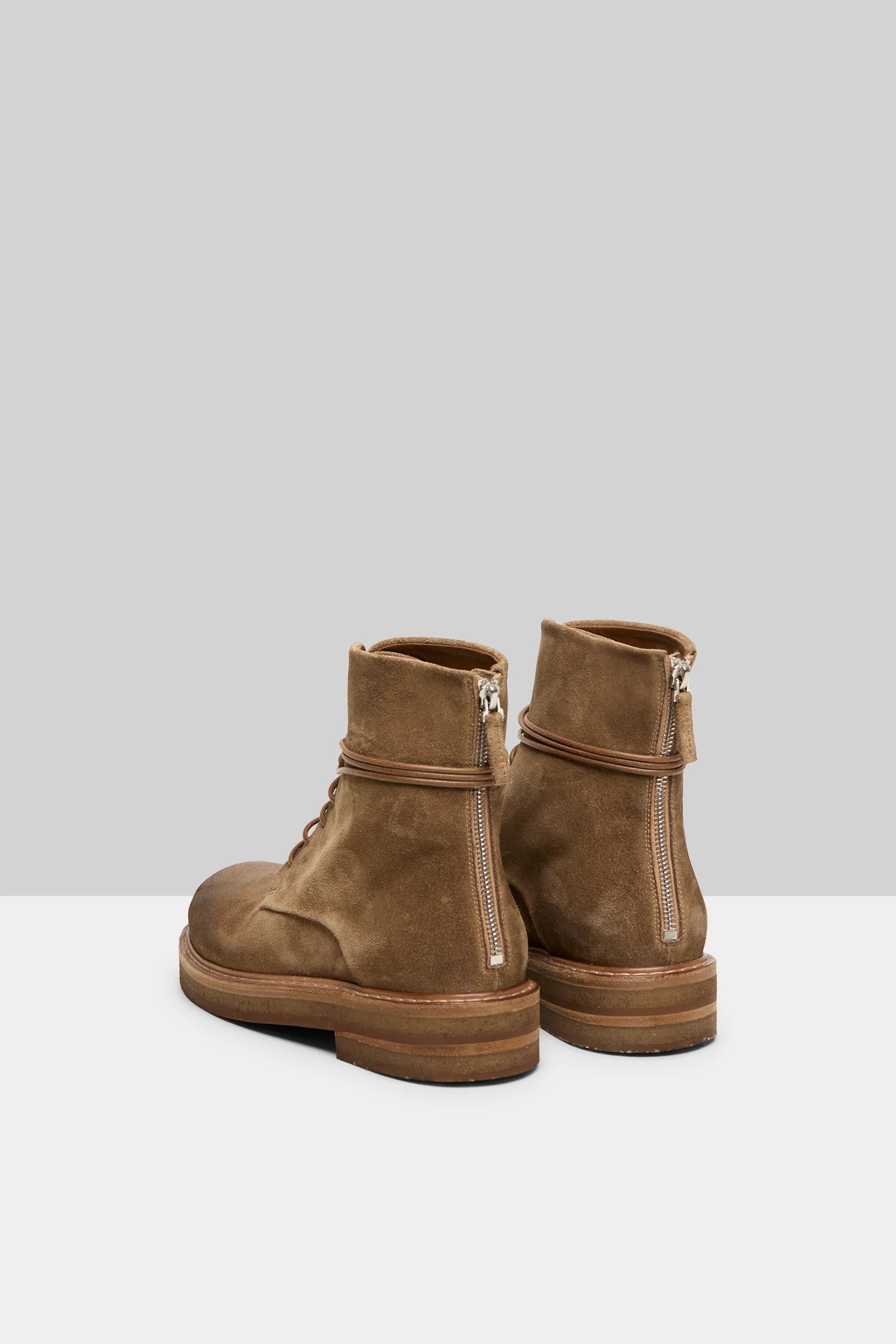 The Parrucca is crafted using premium leather. Built employing time-honored Italian construction methods, the boot has laces that can be tied around the top. Its multilayered sole is an intricate blend of leather and rubber, while the heel is supported by a recycled rubber insert.