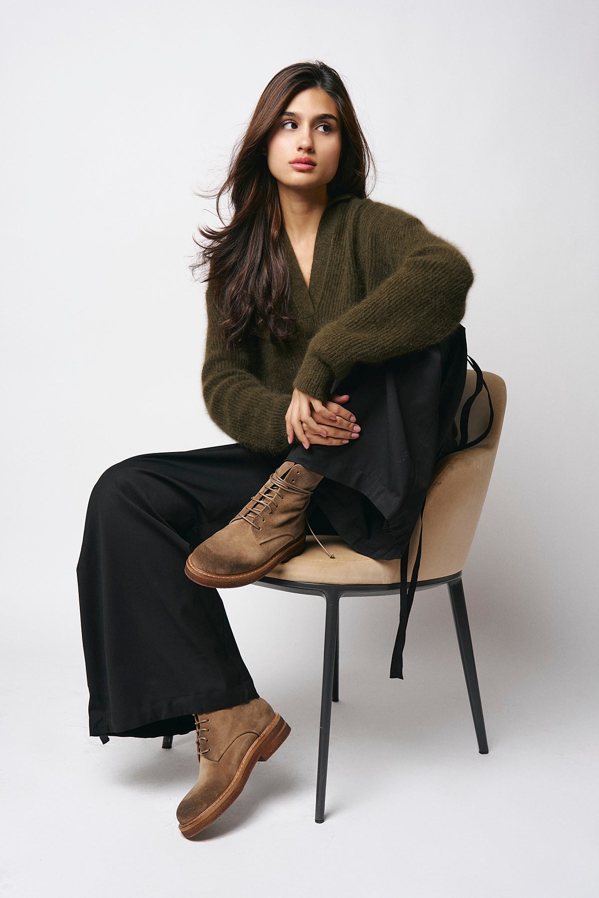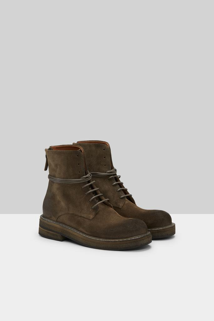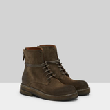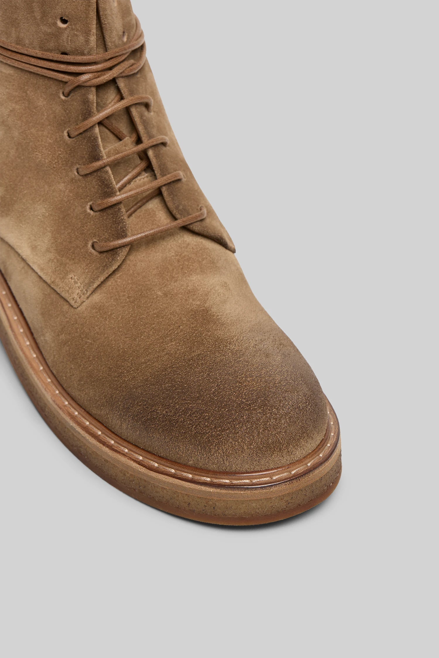 The Parrucca is crafted using premium leather. Built employing time-honored Italian construction methods, the boot has laces that can be tied around the top. Its multilayered sole is an intricate blend of leather and rubber, while the heel is supported by a recycled rubber insert.