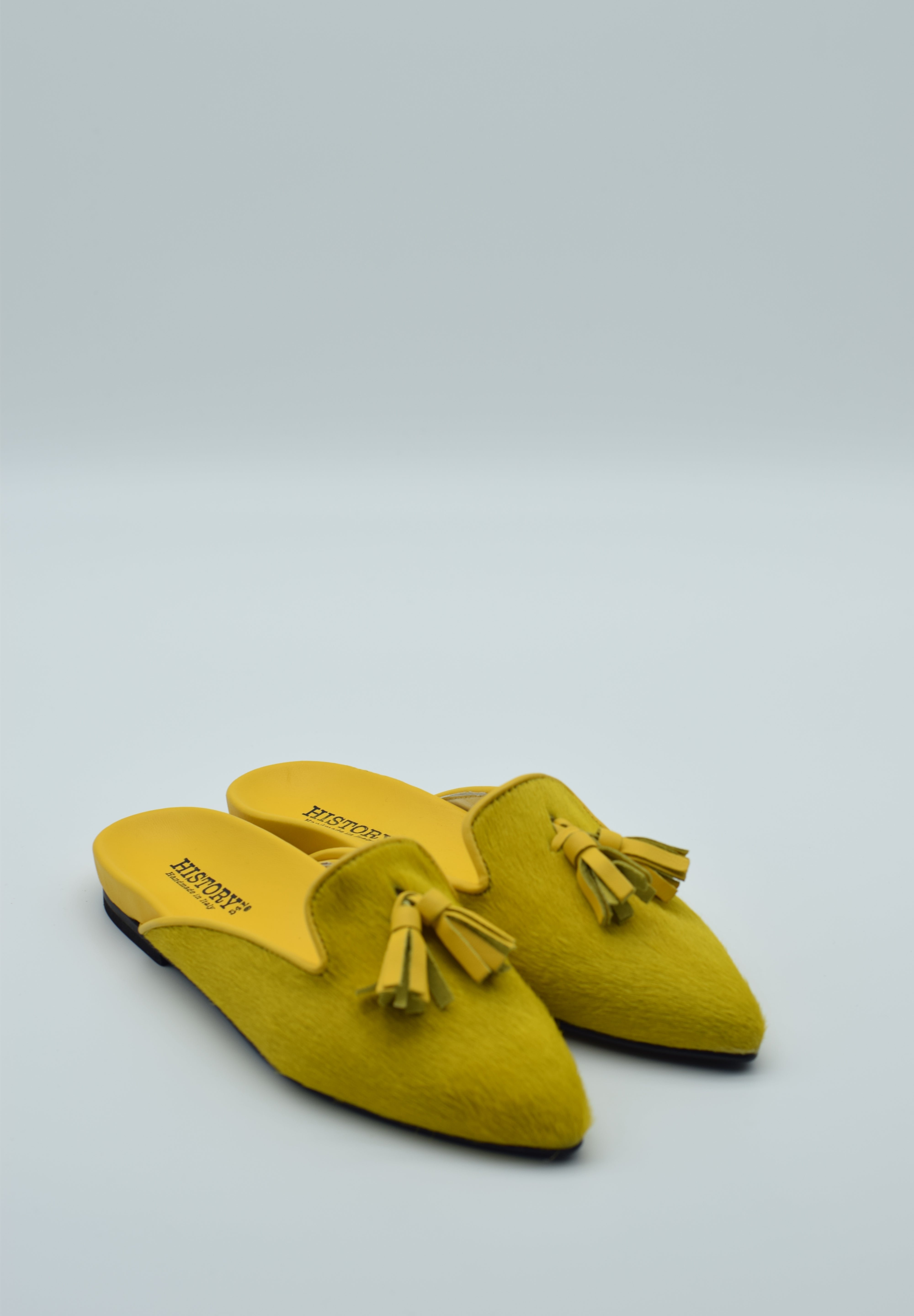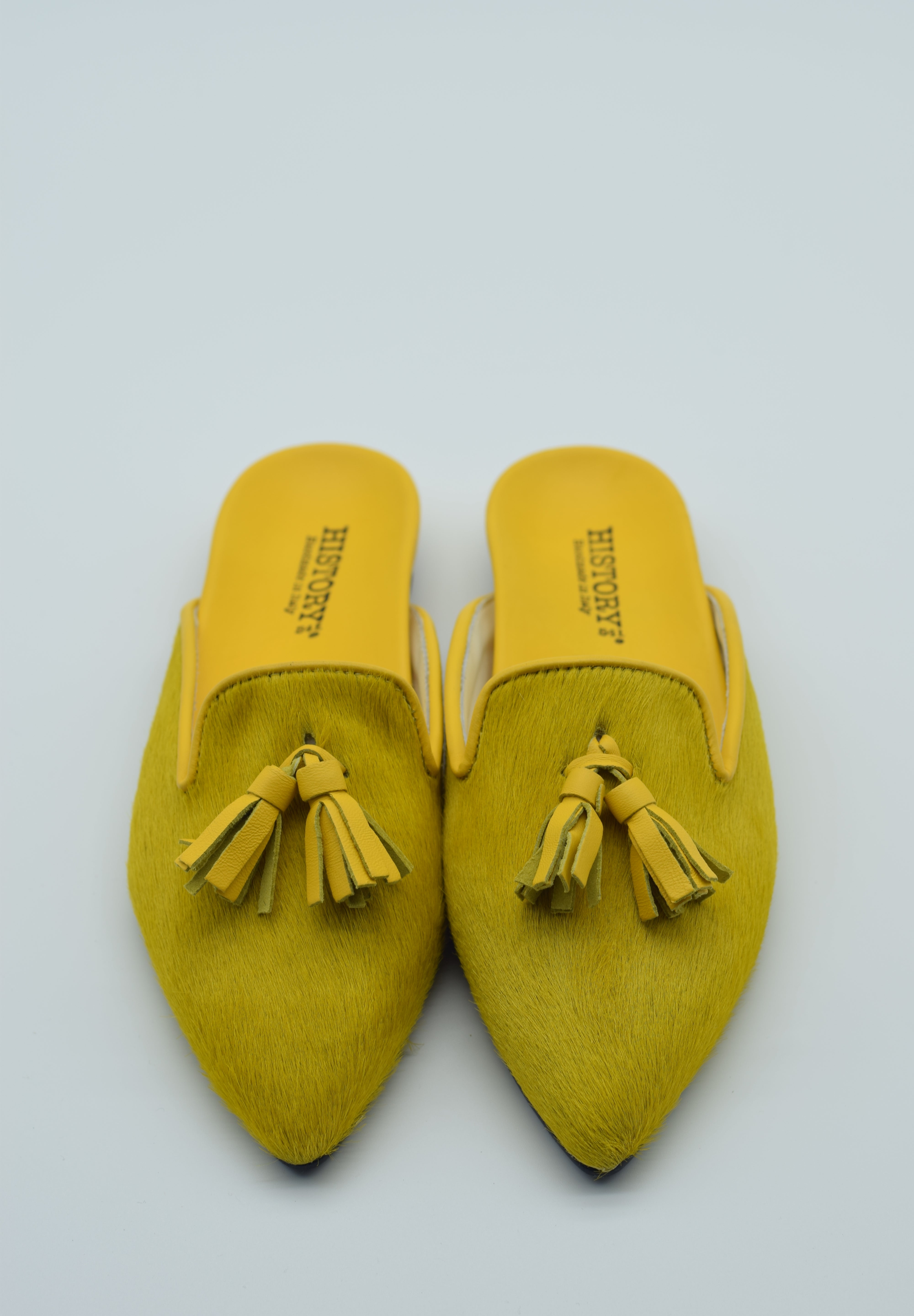 Elegant suede slip-on mules featuring a pointed toe design and decorative tassels on the front, combining comfort and refined style for everyday wear.
