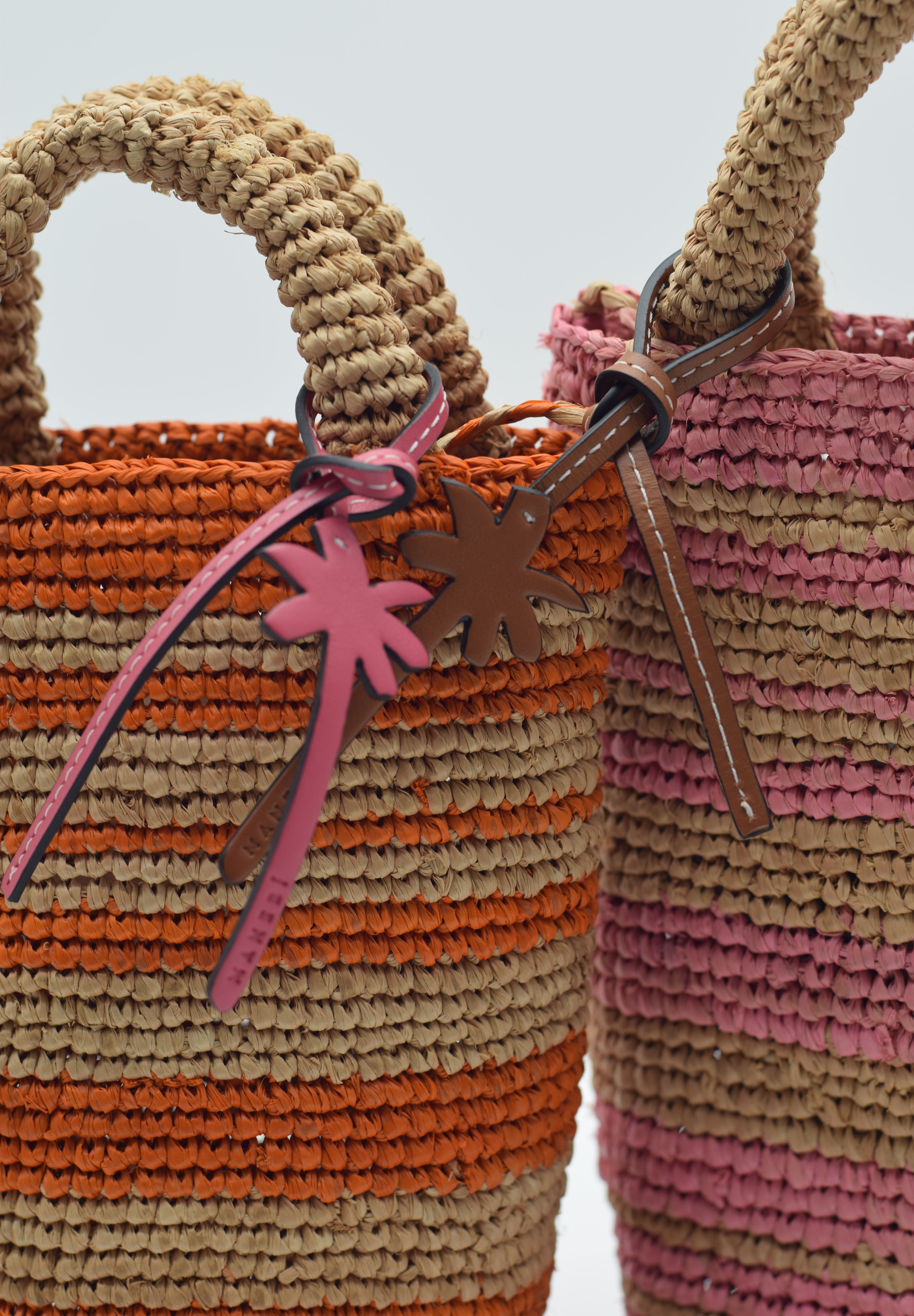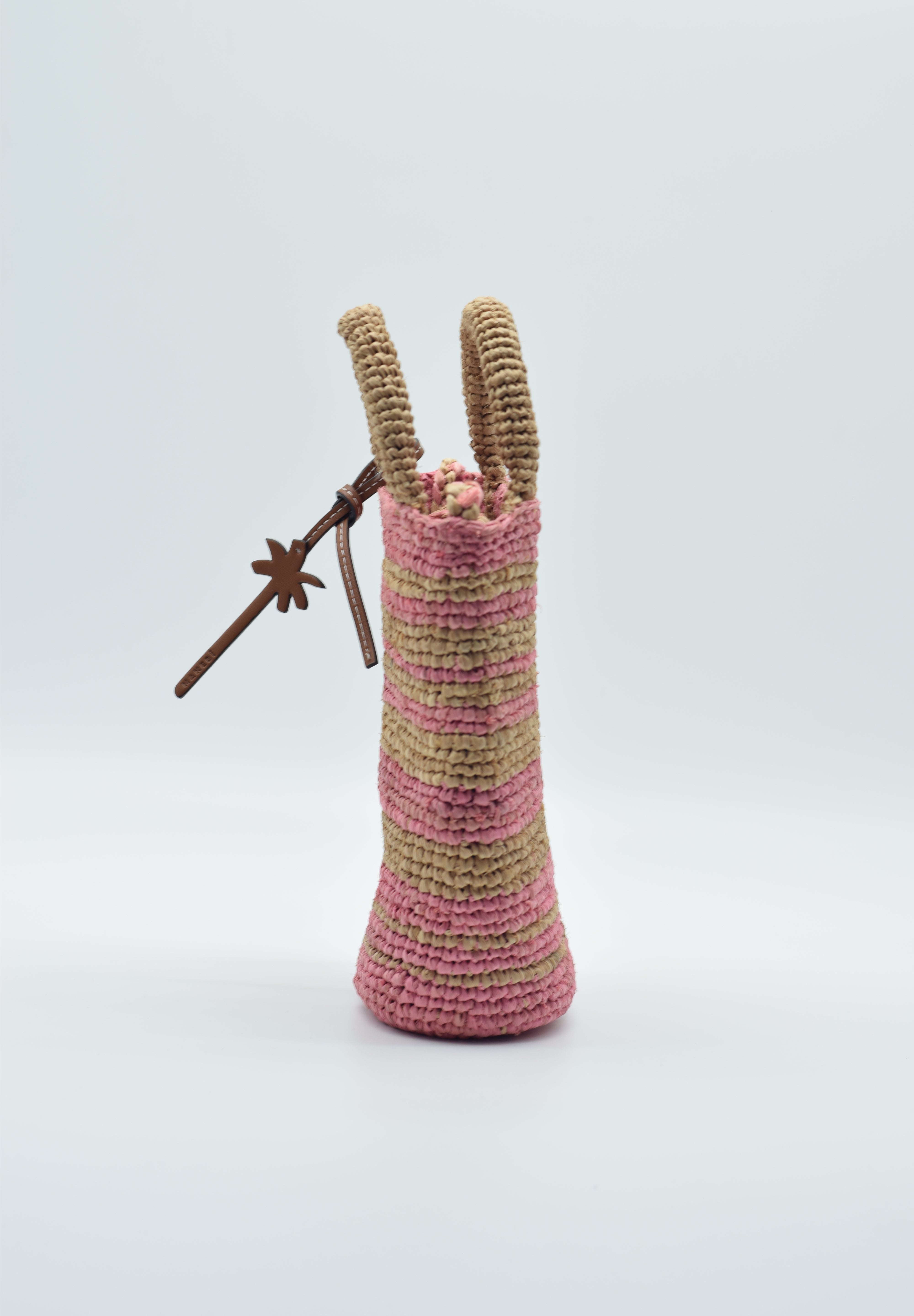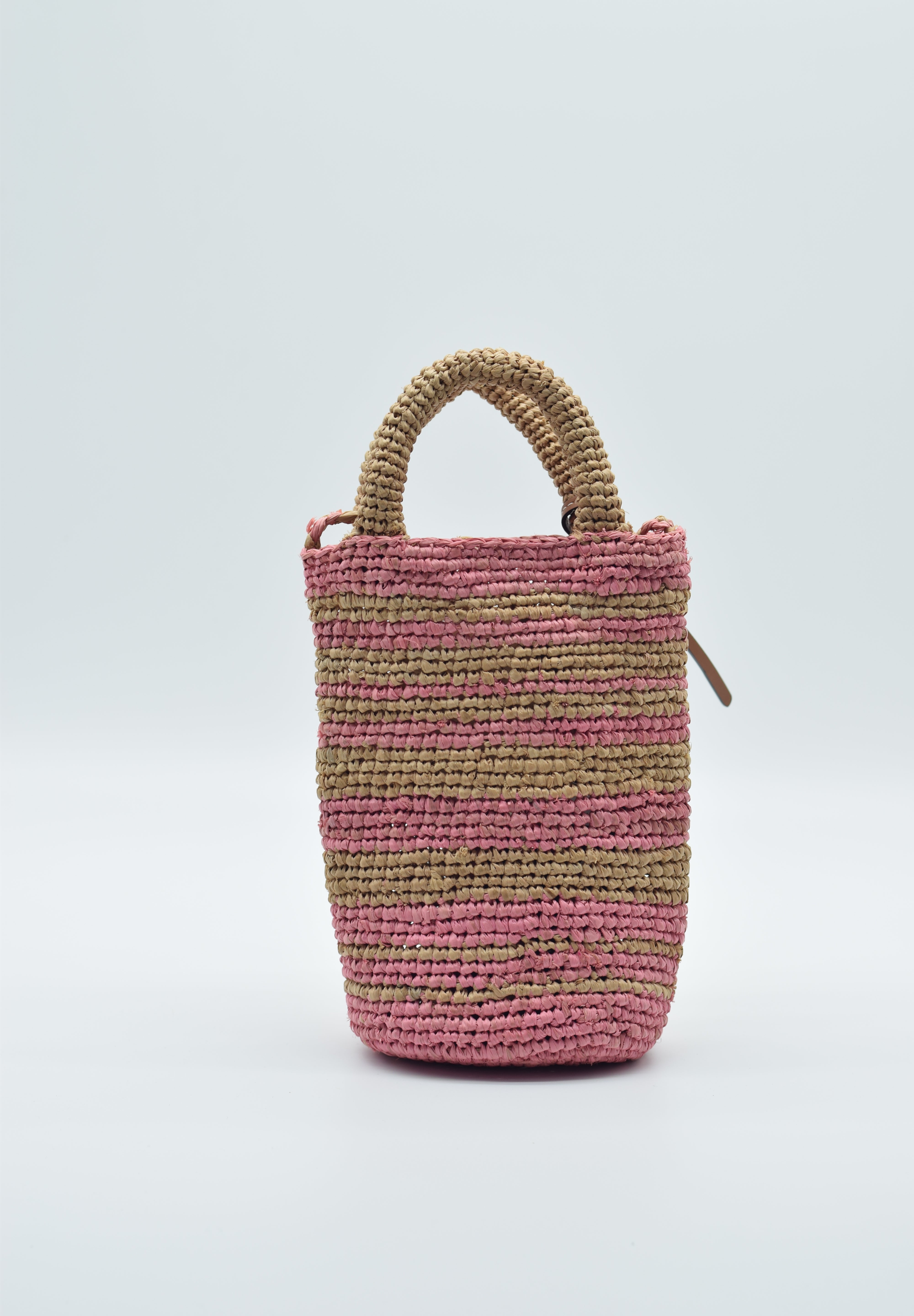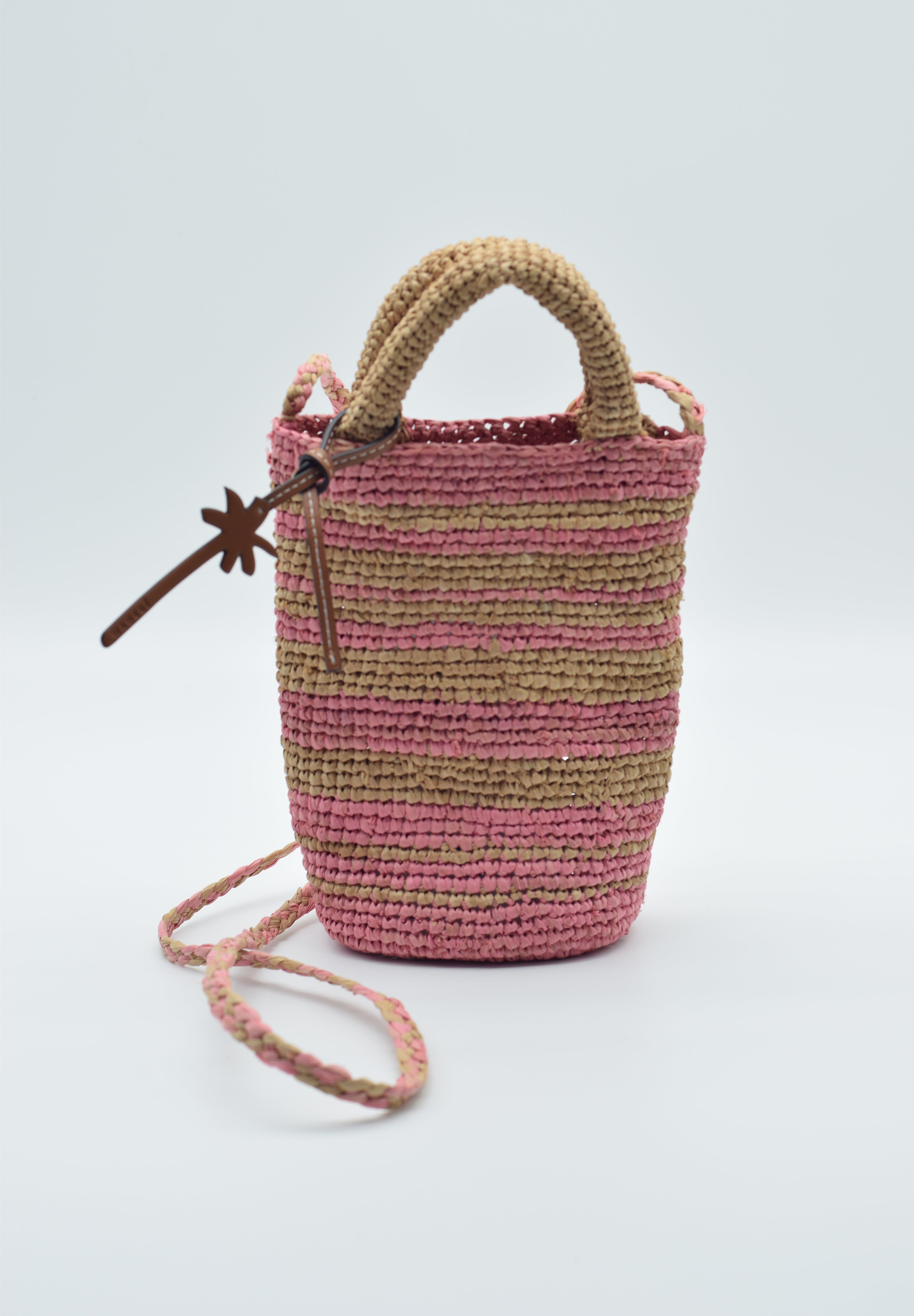 Manebi Natural Raffia Cabana Bag Tan and Pink Stripes V 5.8 AS